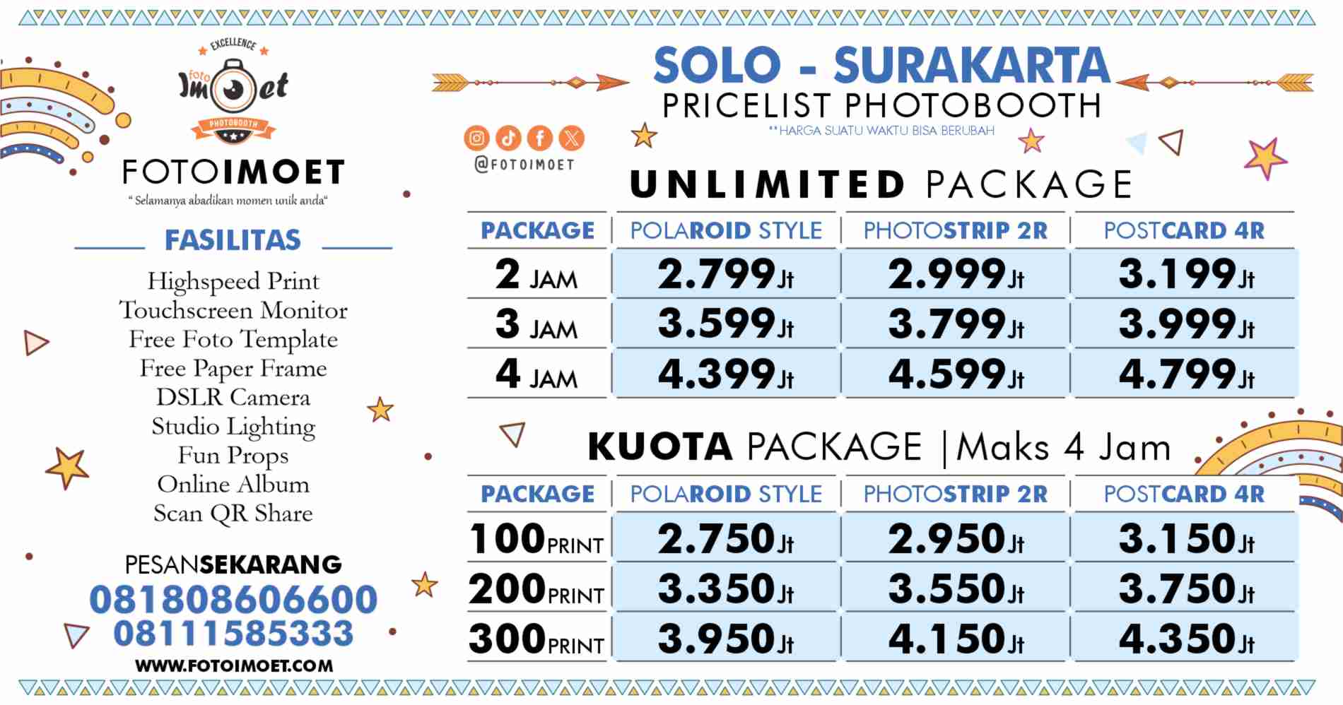 FOTOIMOET Solo Surakarta melayani paket photo booth yang lain, cocok event kantor atau event apapun yang membutuhkan photo booth souvenir foto Solo Surakarta.
